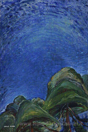 Ti offriamo una riproduzione artigianale su tela dell'opera famosa 'Sopra gli alberi' di Emily Carr, dal Museo delle Riproduzioni.