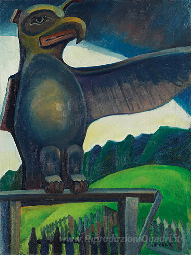 Ti offriamo una riproduzione artigianale su tela dell'opera famosa 'Thunder Uccello, Campbell River' di Emily Carr, dal Museo delle Riproduzioni.
