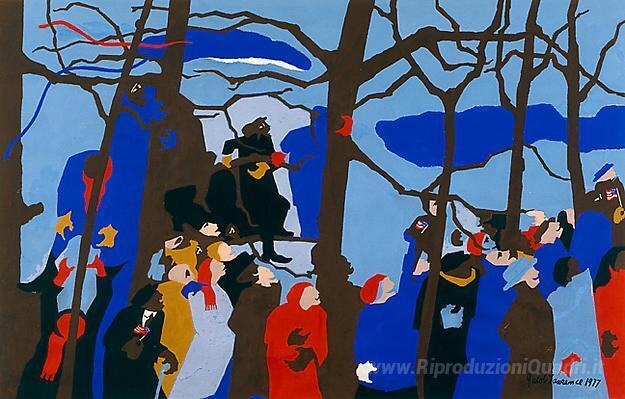 Ti offriamo una riproduzione artigianale su tela dell'opera famosa 'Il giuramento n ° 1' di Jacob Lawrence, dal Museo delle Riproduzioni.