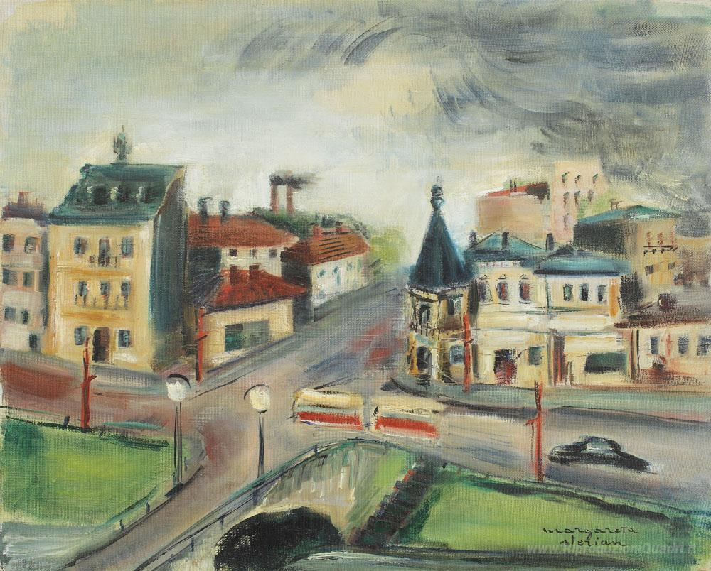Ti offriamo una riproduzione artigianale su tela dell'opera famosa 'Vista dalla studio dell'artista' di Margareta Sterian, dal Museo delle Riproduzioni.