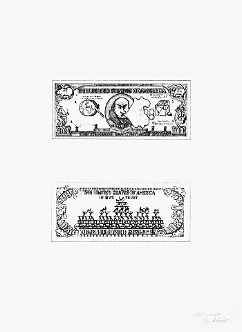 Ti offriamo una riproduzione artigianale su tela dell'opera famosa '$ 108 Bill' di Oyvind Fahlstrom, dal Museo delle Riproduzioni.