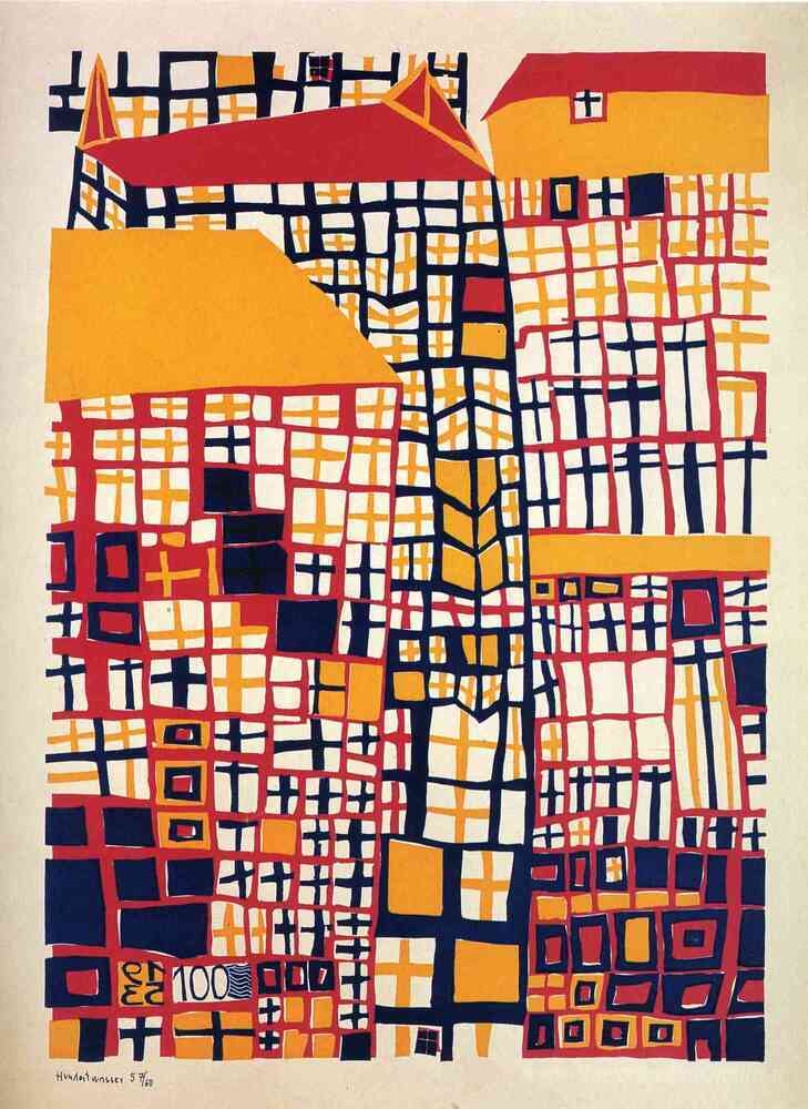 Scoprite l’incanto senza tempo dei 155 Tre High Houses, un'opera straordinaria del geniale artista austriaco Friedensreich Hundertwasser. La sua ricerca visiva, intrisa di armonia tra natura e architettura, si manifesta in questa tela vibrante. Hundertwasser, famoso per il suo approccio innovativo e colorato, utilizza forme organiche e linee sinuose per creare un'atmosfera che invita alla riflessione e all'ispirazione.