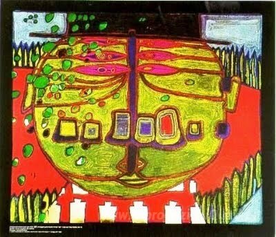 Ti offriamo una riproduzione artigianale su tela dell'opera famosa '567 Three-Eyed verde Buddha con il cappello' di Friedensreich Hundertwasser, dal Museo delle Riproduzioni.