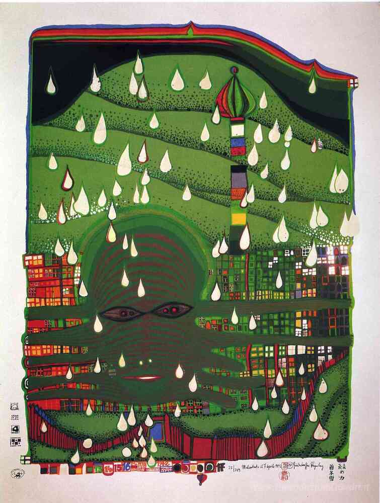 Ti offriamo una riproduzione artigianale su tela dell'opera famosa '690 Green Power' di Friedensreich Hundertwasser, dal Museo delle Riproduzioni.