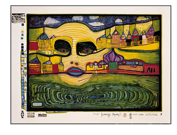 Ti offriamo una riproduzione artigianale su tela dell'opera famosa '691A Irinaland sui Balcani' di Friedensreich Hundertwasser, dal Museo delle Riproduzioni.