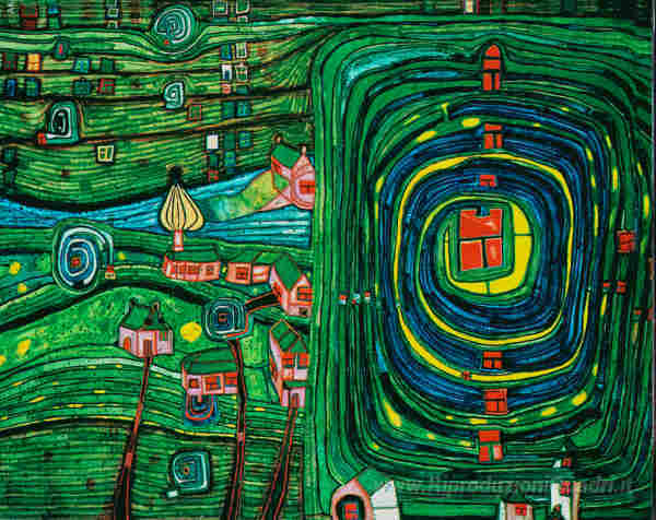 Ti offriamo una riproduzione artigianale su tela dell'opera famosa '738 Grass Per chi piange' di Friedensreich Hundertwasser, dal Museo delle Riproduzioni.