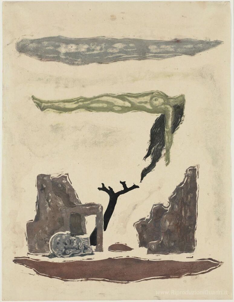 Ti offriamo una riproduzione artigianale su tela dell'opera famosa 'Allegoria: Rovine (Haikyo)' di Koshiro Onchi, dal Museo delle Riproduzioni.