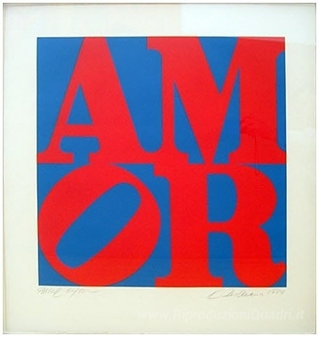Ti offriamo una riproduzione artigianale su tela dell'opera famosa 'Amor' di Robert Indiana, dal Museo delle Riproduzioni.