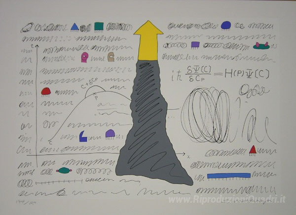 Il dipinto non si limita a decorare uno spazio; lo trasforma in un luogo di ispirazione e contemplazione. La composizione di Anche formula matematica invita l'osservatore a riflettere sull'intersezione tra arte e scienza, mentre i toni vibranti e le forme dinamiche infondono vitalità all'ambiente circostante. Scegliere questo capolavoro per il tuo spazio significa scegliere un'opera che non solo abbellisce, ma rende ogni istante unico e memorabile.