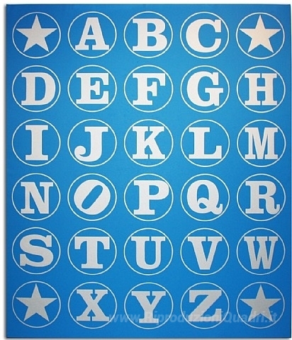 Ti offriamo una riproduzione artigianale su tela dell'opera famosa 'Argento / blu di alfabeto parete' di Robert Indiana, dal Museo delle Riproduzioni.