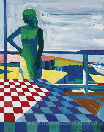 Ti offriamo una riproduzione artigianale su tela dell'opera famosa 'Balcone Figura' di Roland Petersen, dal Museo delle Riproduzioni.
