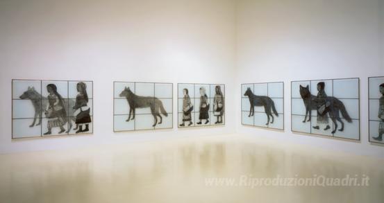 Ti offriamo una riproduzione artigianale su tela dell'opera famosa 'Banda di ragazze e branco di lupi' di Kiki Smith, dal Museo delle Riproduzioni.