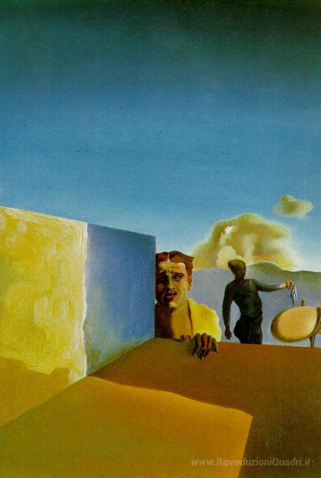 Ti offriamo una riproduzione artigianale su tela dell'opera famosa 'Barber addolorati per la persistenza del bel tempo (Il Angosciat' di Salvador Dali, dal Museo delle Riproduzioni.