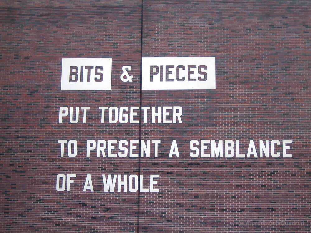 Ti offriamo una riproduzione artigianale su tela dell'opera famosa 'Bits & Pieces Mettere insieme per presentare una parvenza di un ' di Lawrence Weiner, dal Museo delle Riproduzioni.