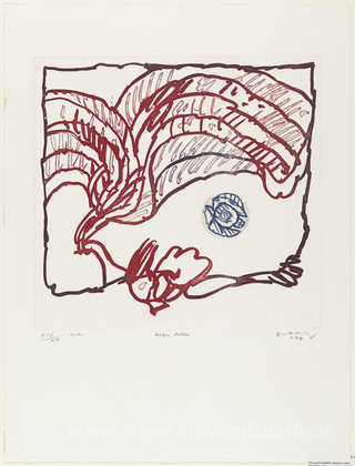 Ti offriamo una riproduzione artigianale su tela dell'opera famosa 'Blu disco (Disque Bleu)' di Pierre Alechinsky, dal Museo delle Riproduzioni.