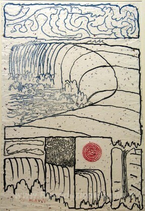 Ti offriamo una riproduzione artigianale su tela dell'opera famosa 'Blue Falls (Chute bleue)' di Pierre Alechinsky, dal Museo delle Riproduzioni.