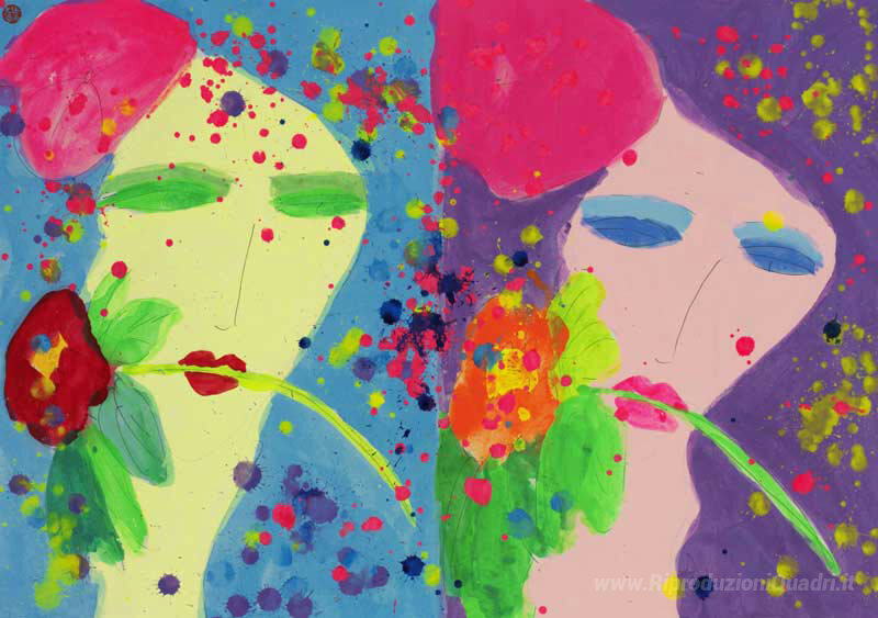 Ti offriamo una riproduzione artigianale su tela dell'opera famosa 'Blue Lady, Viola Lady' di Walasse Ting, dal Museo delle Riproduzioni.