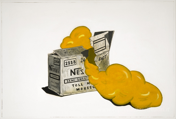 Ti offriamo una riproduzione artigianale su tela dell'opera famosa 'Box di Nestlé' di Marjorie Strider, dal Museo delle Riproduzioni.