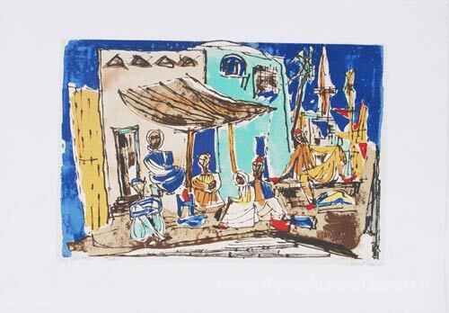 Ti offriamo una riproduzione artigianale su tela dell'opera famosa 'Cafe arabo' di Marcel Janco, dal Museo delle Riproduzioni.