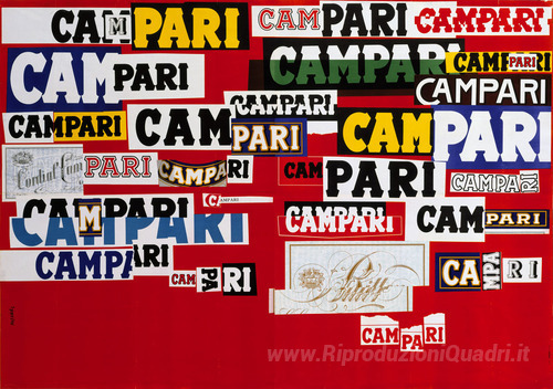 Ti offriamo una riproduzione artigianale su tela dell'opera famosa 'Campari' di Bruno Munari, dal Museo delle Riproduzioni.