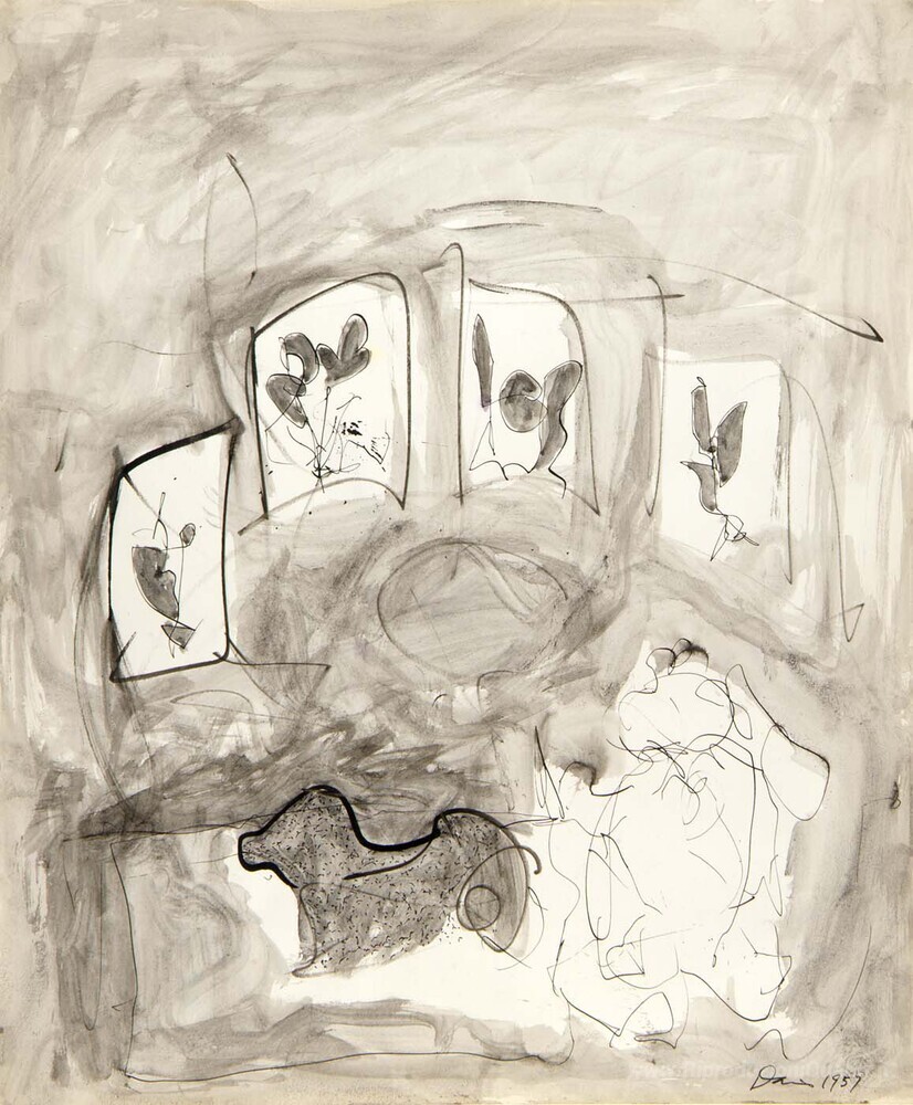 Ti offriamo una riproduzione artigianale su tela dell'opera famosa 'Cane e fiori' di Gene Davis, dal Museo delle Riproduzioni.