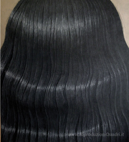 Ti offriamo una riproduzione artigianale su tela dell'opera famosa 'Capelli neri' di Domenico Gnoli, dal Museo delle Riproduzioni.