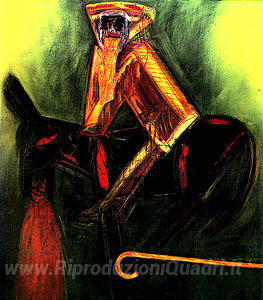 Ti offriamo una riproduzione artigianale su tela dell'opera famosa 'Careto com Burro' di Joao Vieira, dal Museo delle Riproduzioni.