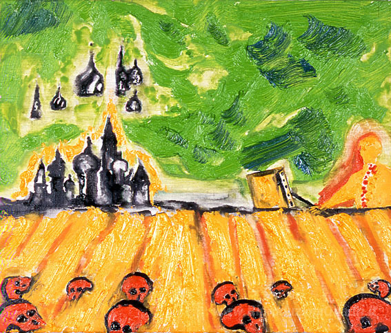 Ti offriamo una riproduzione artigianale su tela dell'opera famosa 'Carni sopra' di Enzo Cucchi, dal Museo delle Riproduzioni.