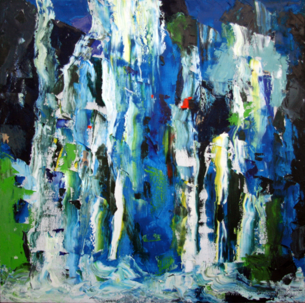 Ti offriamo una riproduzione artigianale su tela dell'opera famosa 'Cascata blu' di Romul Nutiu, dal Museo delle Riproduzioni.