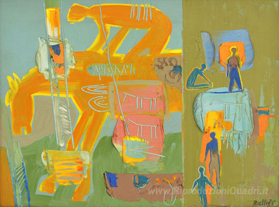 Ti offriamo una riproduzione artigianale su tela dell'opera famosa 'Cavaliere Palinsesto' di Walter Battiss, dal Museo delle Riproduzioni.