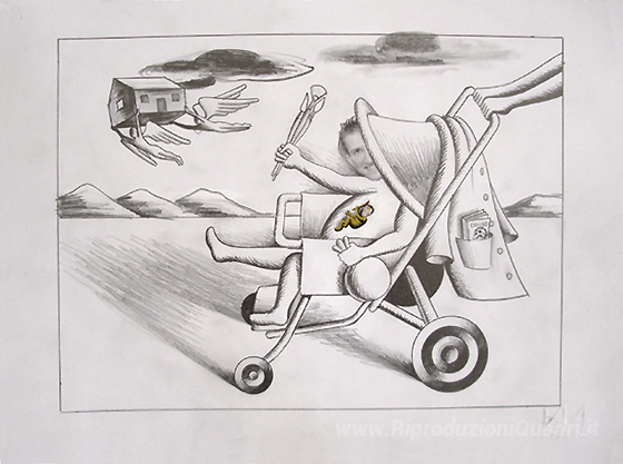 Ti offriamo una riproduzione artigianale su tela dell'opera famosa 'Chi è il tuo papà?' di Enzo Cucchi, dal Museo delle Riproduzioni.