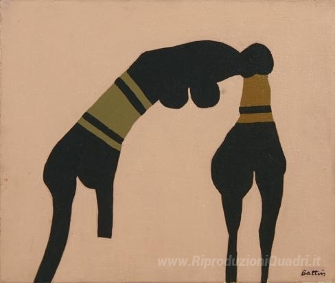 Ti offriamo una riproduzione artigianale su tela dell'opera famosa 'Cifre Bending' di Walter Battiss, dal Museo delle Riproduzioni.