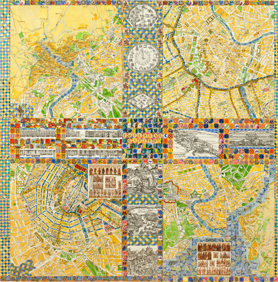 Ti offriamo una riproduzione artigianale su tela dell'opera famosa 'Città Imperiali' di Joyce Kozloff, dal Museo delle Riproduzioni.