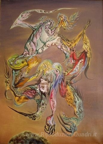 Ti offriamo una riproduzione artigianale su tela dell'opera famosa 'Combattimento des Princes Saturniens III' di Wolfgang Paalen, dal Museo delle Riproduzioni.