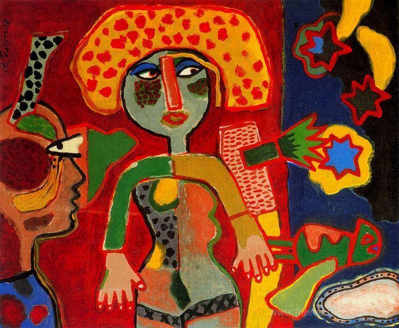 Ti offriamo una riproduzione artigianale su tela dell'opera famosa 'Composizione con figure' di Corneille, dal Museo delle Riproduzioni.