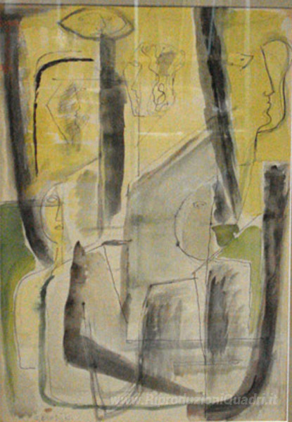 Ti offriamo una riproduzione artigianale su tela dell'opera famosa 'Composizione con i caratteri' di Aurel Cojan, dal Museo delle Riproduzioni.
