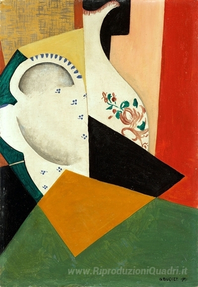 Ti offriamo una riproduzione artigianale su tela dell'opera famosa 'Composizione con un vaso da Vieux-Strasburgo' di Gustave Buchet, dal Museo delle Riproduzioni.