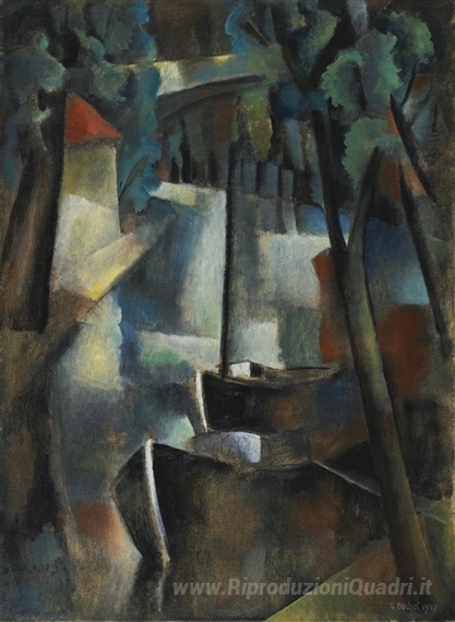 Ti offriamo una riproduzione artigianale su tela dell'opera famosa 'Crépuscule sur le canal' di Gustave Buchet, dal Museo delle Riproduzioni.