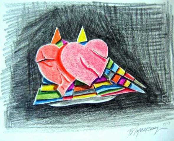 Ti offriamo una riproduzione artigianale su tela dell'opera famosa 'Cuori a vela' di Burhan Dogancay, dal Museo delle Riproduzioni.