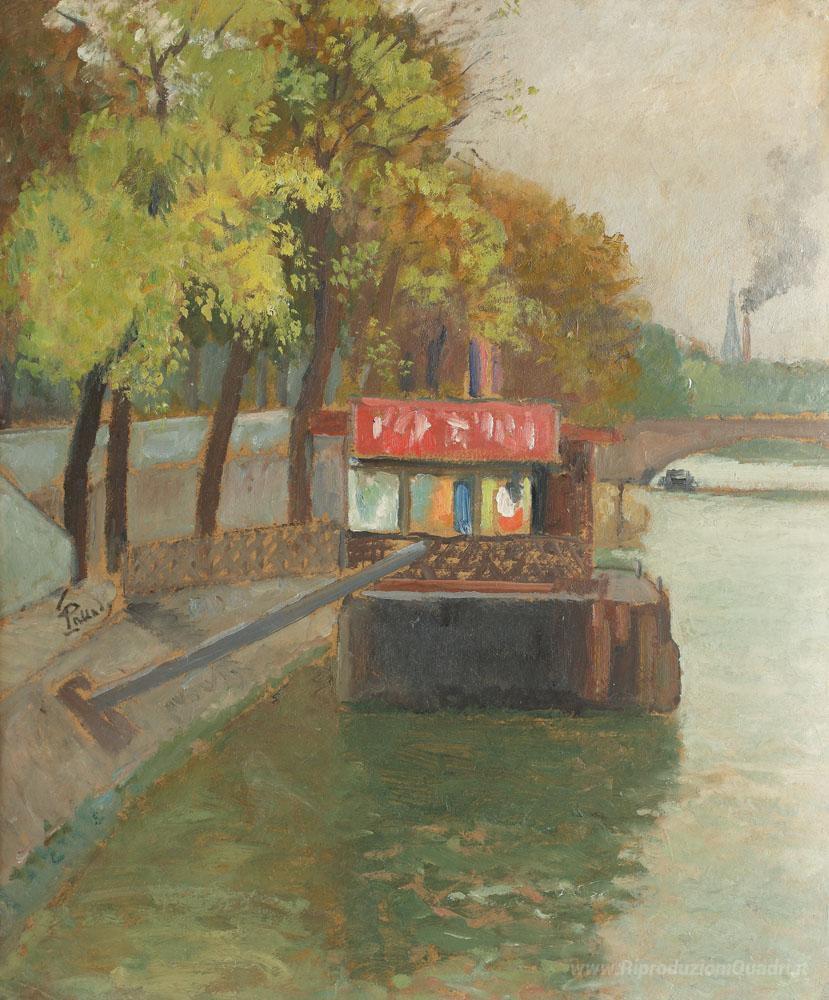 Ti offriamo una riproduzione artigianale su tela dell'opera famosa 'Debarcader pe Sena, dinspre Belleville' di Theodor Pallady, dal Museo delle Riproduzioni.