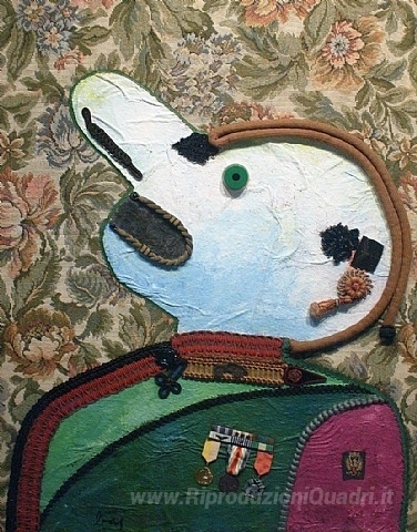 Ti offriamo una riproduzione artigianale su tela dell'opera famosa 'Decorato' di Enrico Baj, dal Museo delle Riproduzioni.