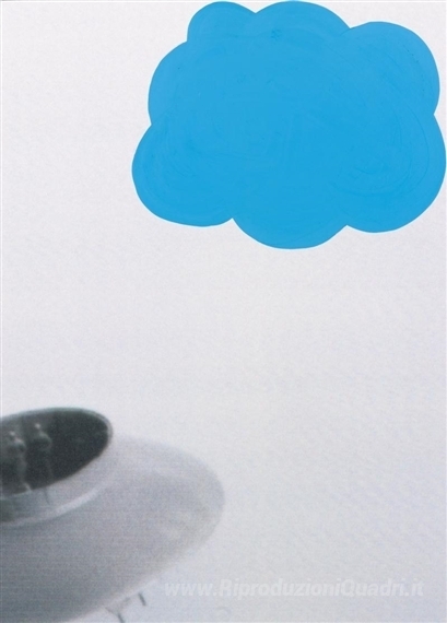 Ti offriamo una riproduzione artigianale su tela dell'opera famosa 'Disco volante e Cloud (blu)' di John Baldessari, dal Museo delle Riproduzioni.