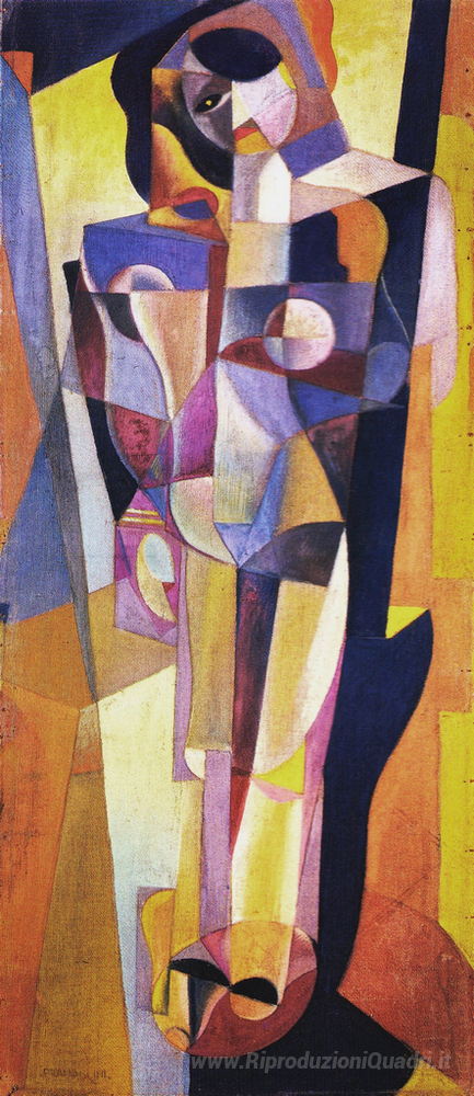 Ti offriamo una riproduzione artigianale su tela dell'opera famosa 'Donna + ambiente' di Enrico Prampolini, dal Museo delle Riproduzioni.