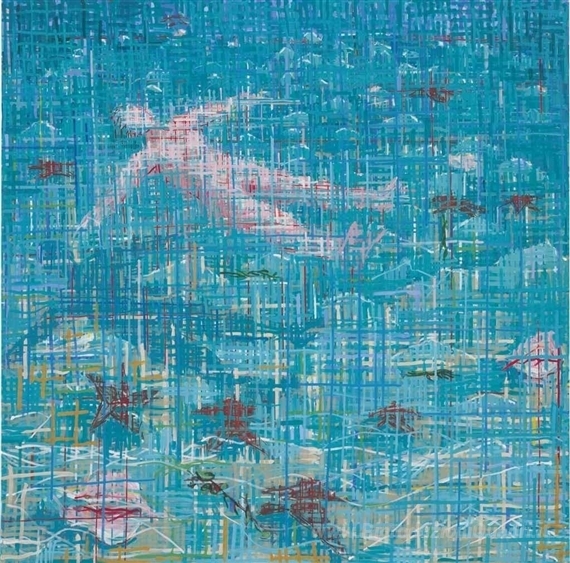 Ti offriamo una riproduzione artigianale su tela dell'opera famosa 'Donna galleggiante' di Jennifer Bartlett, dal Museo delle Riproduzioni.