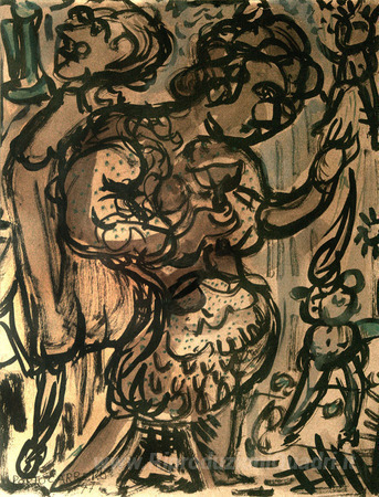 Ti offriamo una riproduzione artigianale su tela dell'opera famosa 'Donne in giardino' di Rene Portocarrero, dal Museo delle Riproduzioni.