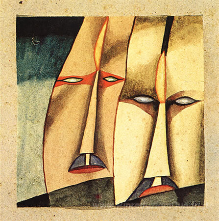 Ti offriamo una riproduzione artigianale su tela dell'opera famosa 'Dos' di Xul Solar, dal Museo delle Riproduzioni.