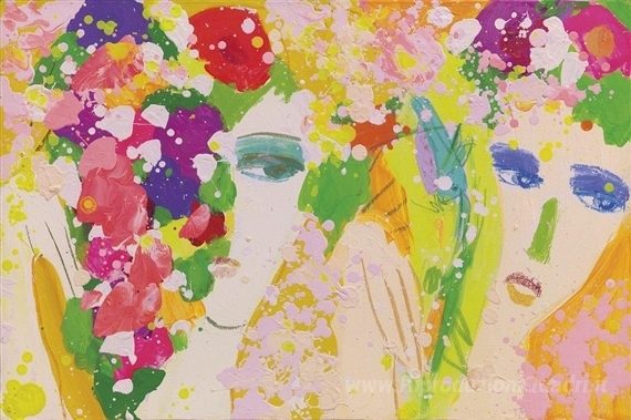 Ti offriamo una riproduzione artigianale su tela dell'opera famosa 'Due angeli' di Walasse Ting, dal Museo delle Riproduzioni.
