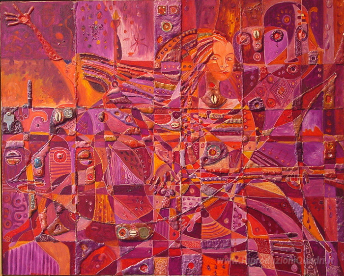 Ti offriamo una riproduzione artigianale su tela dell'opera famosa 'Echi di Musica' di Nzante Spee, dal Museo delle Riproduzioni.