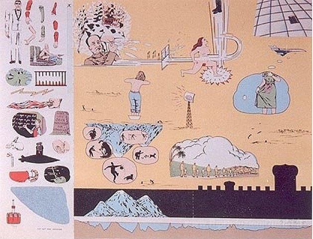 La tecnica a olio impiegata da Fahlstrom si distingue per la sua ricchezza cromatica, capace di evocare atmosfere intense e coinvolgenti. Eddie (fratello di Sylvie) nel deserto non è solo un dipinto, ma un viaggio emozionale attraverso paesaggi onirici, perfetto per arricchire e valorizzare qualsiasi spazio abitativo. Aggiungi un tocco di originalità e stile alla tua casa con quest'opera, che certamente saprà ispirare conversazioni e ammaliere gli ospiti.