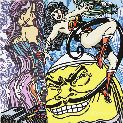 Ti offriamo una riproduzione artigianale su tela dell'opera famosa 'Eggfu.' di Erro, dal Museo delle Riproduzioni.